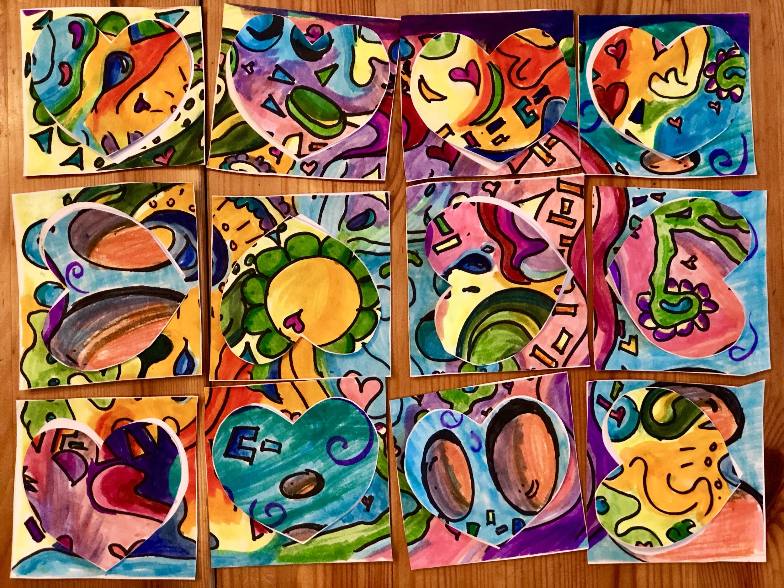I turned on the famous Abba song and began to doodle and color. When the drawing was complete, I cut hearts from it.